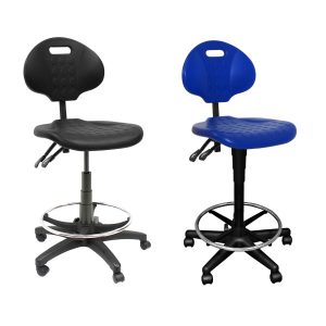 A simple, robust, adjustable flat polyurethane stool. Featuring an under-seat ring lever mechanism for ...