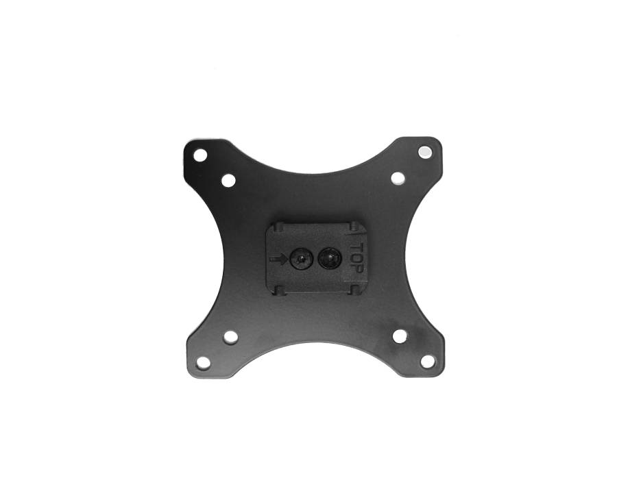 Attached to the end of a monitor arm, the VESA plate is affixed to the monitor and then simply clips on the monitor arm. The user can easily remove the monitor from the monitor arm as desired.
