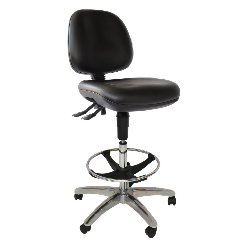 The Gala Lab Drafting Chair is a popular choice when comfort and ease of cleaning are both important.
