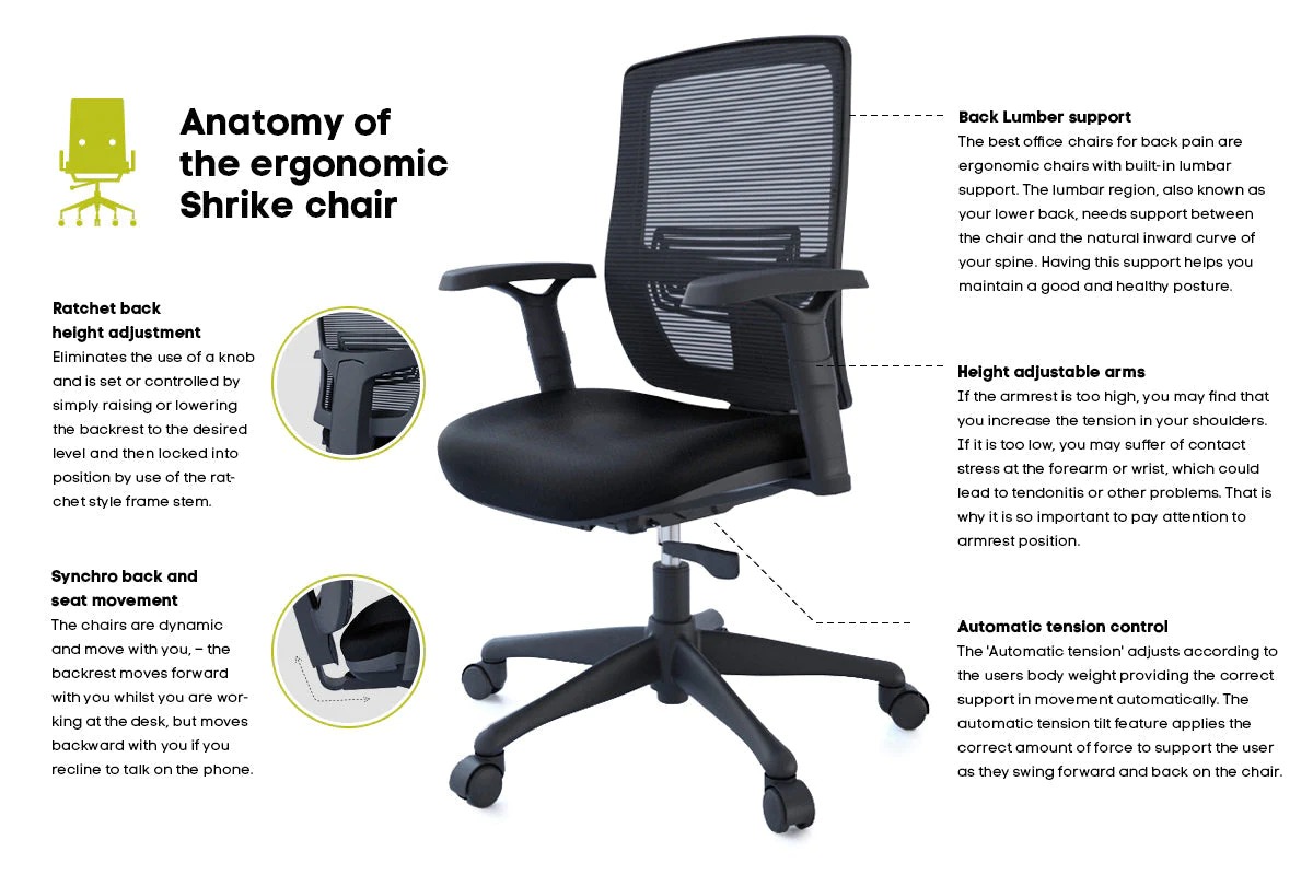 The JasonL Shrike Ergonomic Chair has back support, its mesh back ensures ventilation and lumbar support ensures that your back is supported ergonomically.