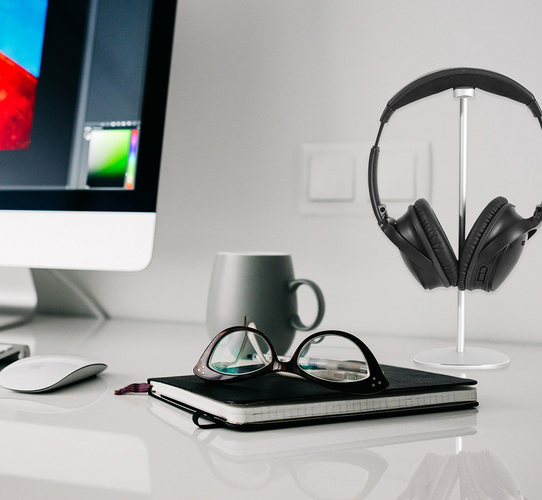 Offering a silicone headrest to prevent the headphones from slipping and a solid base to keep the structure stable. The base features non-skid silicone base pads to protect your work surface from scratches or scuffs.