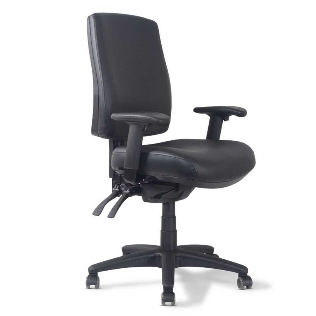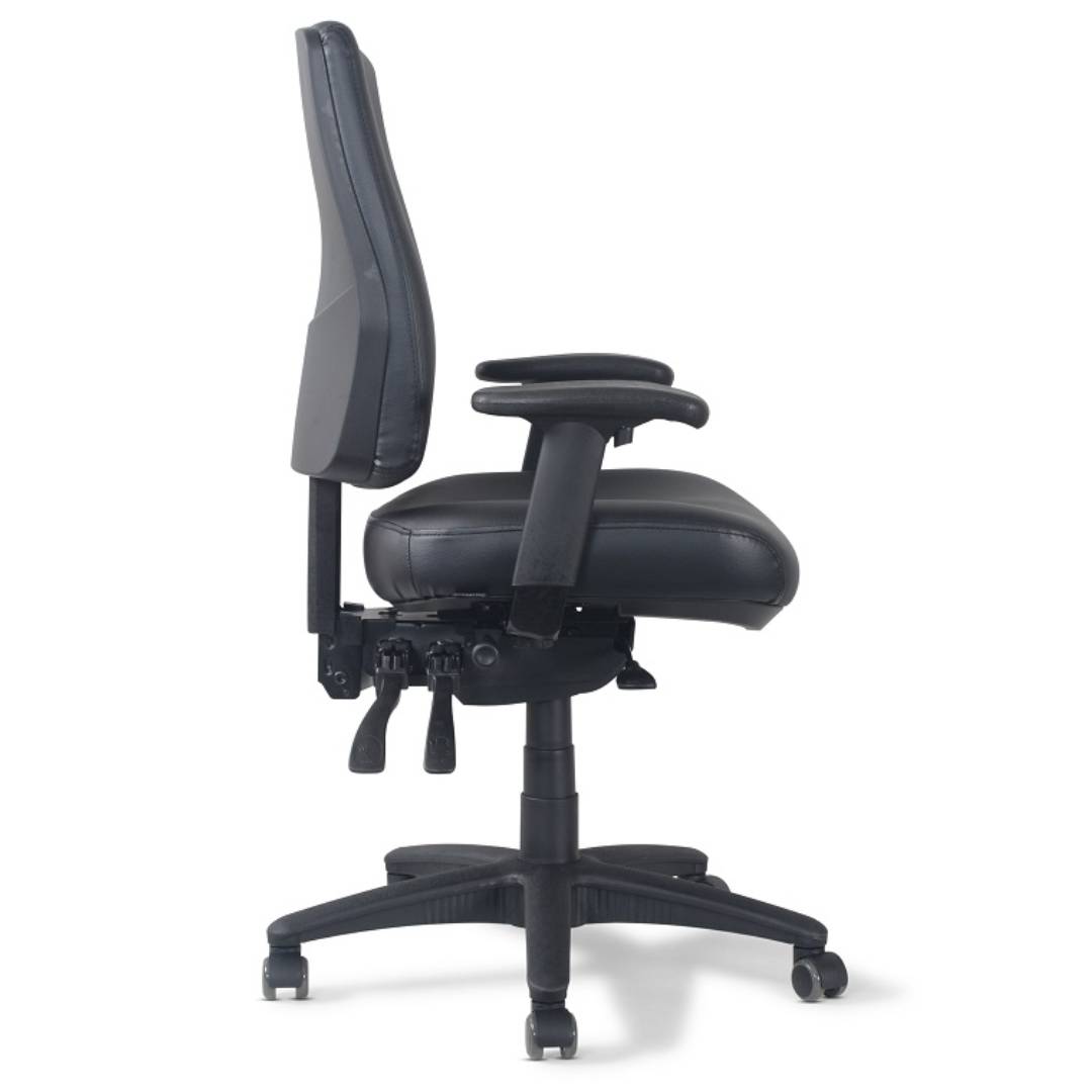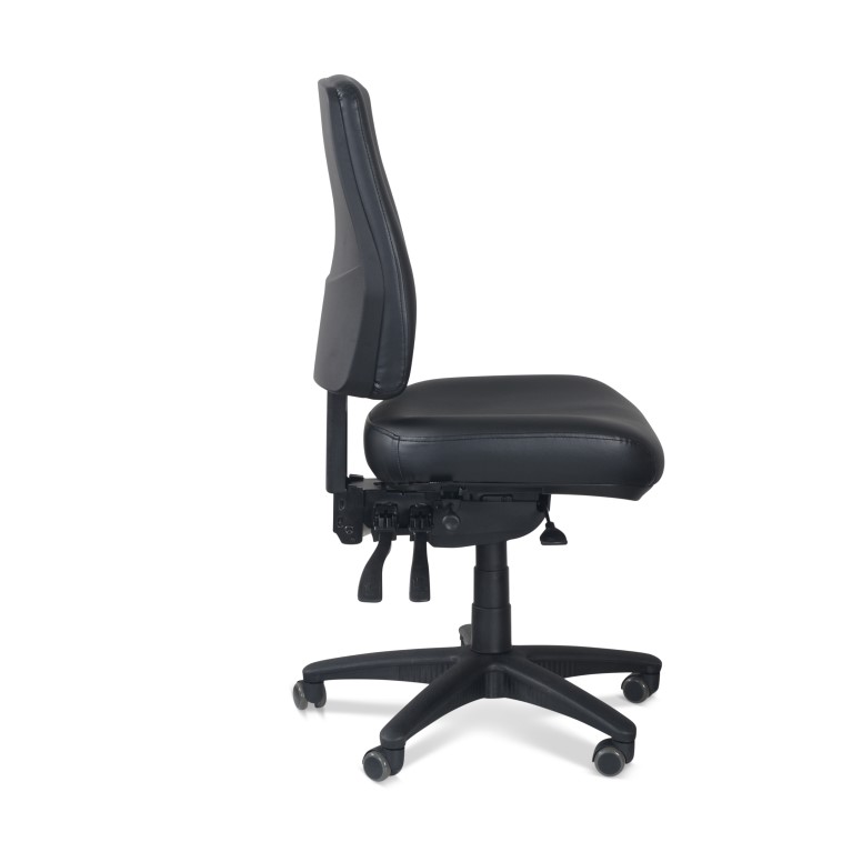 It features high levels of ergonomic support and user comfort.? Multi adjustable, with a heavy-duty four lever mechanism. The Omega Flint offers a ratchet adjustable seat pan, adjustable high back height, and a seat depth slide adjustment; upholstered with high level synthetic leather, providing a stylish option for the home office. A more traditional look and feel, but with comfortable ergonomics. Don Draper would approve.