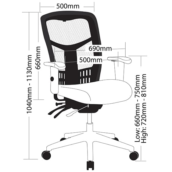 The OMesh is an executive fabric ergonomic chair with a fully adjustable mesh back, aluminium star base and 4 lever adjustments for comfort. It is both highly configurable and fully adjustable.