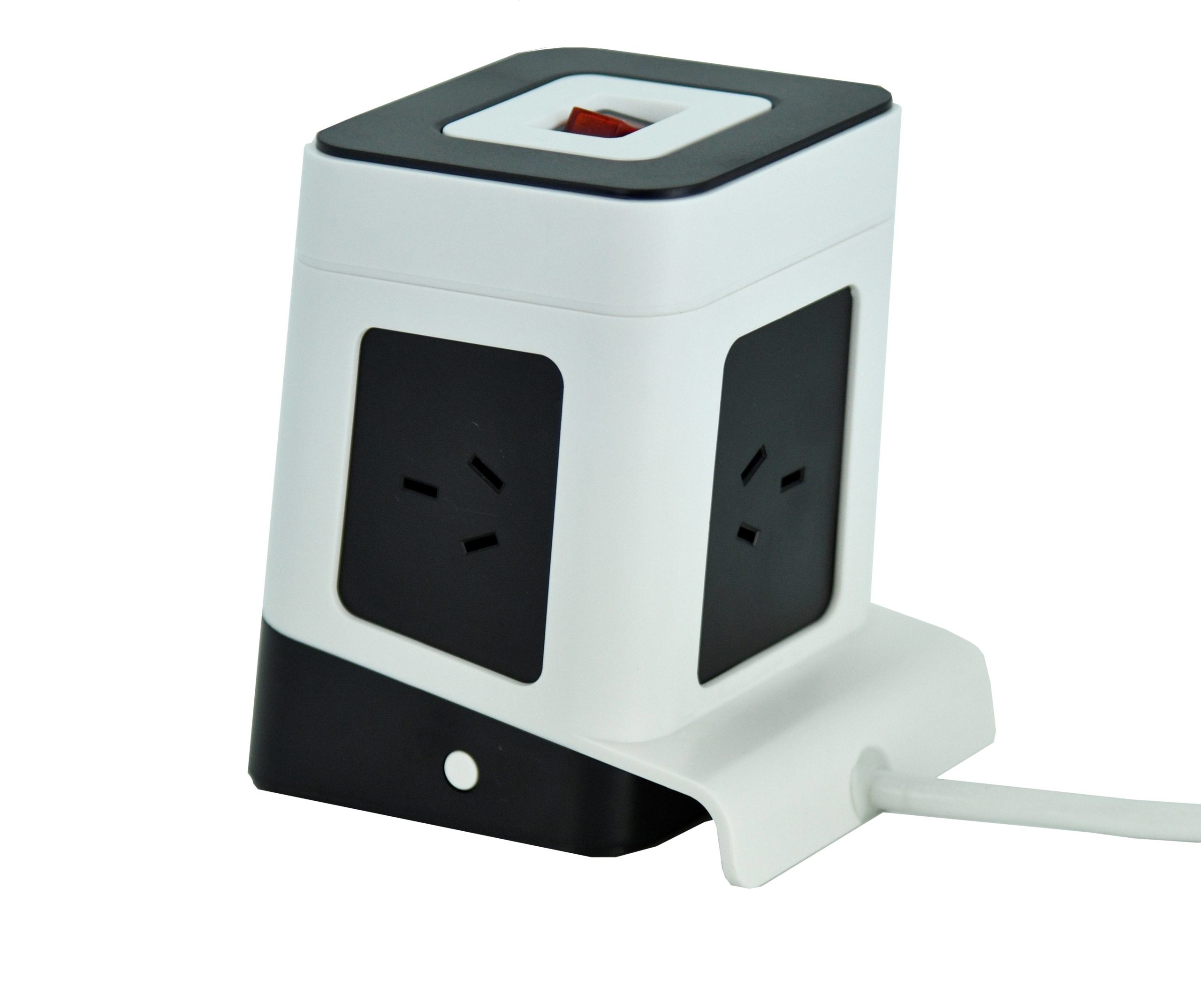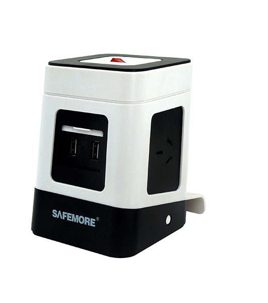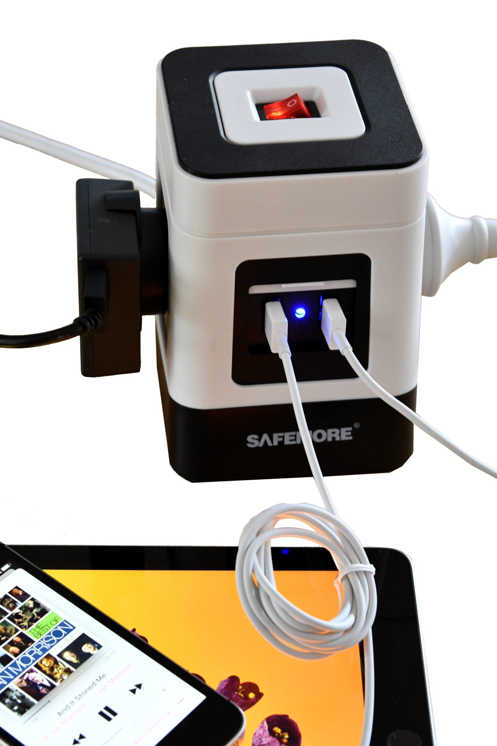 Inspired from the leaning tower of Pisa, the elegantly slanted Safemore power board has three power sockets and two USB ports. Includes source & overload protection.
